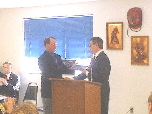 Presentation of Showcase Community Award by Governor Johanns to Mayor Dan Henry