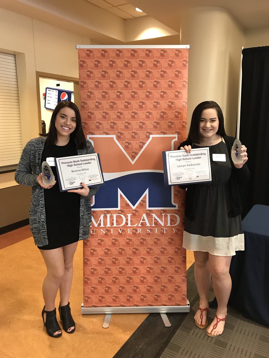 Louisville students Brenna Milius and Lauryn Kalkowski were recognized at the Midland University Outstanding Leaders Luncheon which was sponsored by Pinnacle Bank. Congratulations Ladies!!
